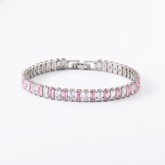 Pink Sapphire Prism Tennis Bracelet | White Gold