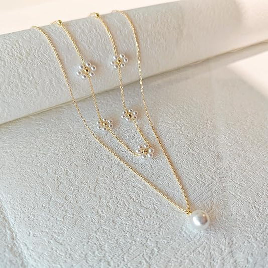 SAVE 80%Floral Pearl Layered Necklace | Gold