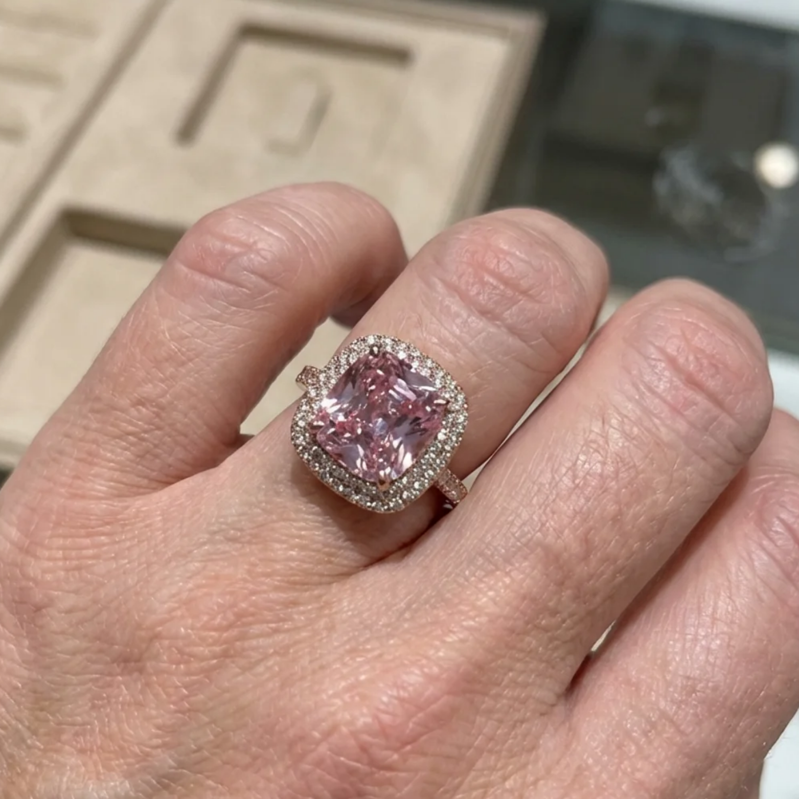 Cushion Pink Sapphire Ring | Rose Gold